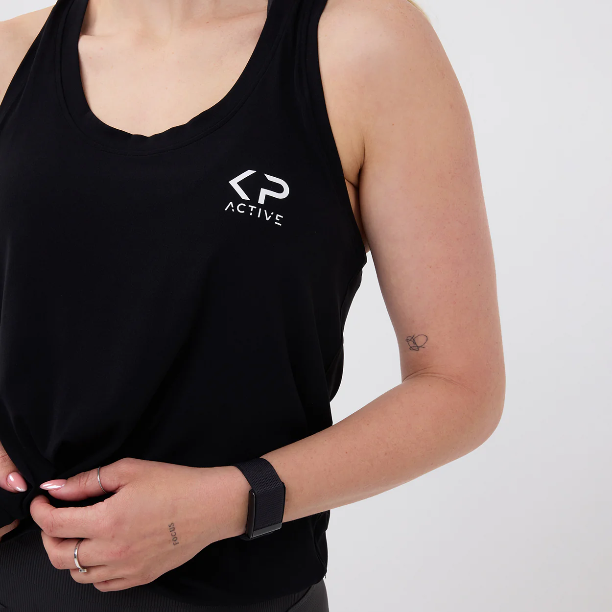 This sport top offers a perfect combination of style and comfort. The black design, accented with a white KP Active logo, provides a modern and sporty look. Made from high-quality material, consisting of 90% nylon and 10% spandex, this top offers excellent elasticity and durability. Ideal for various sports activities and daily workouts.