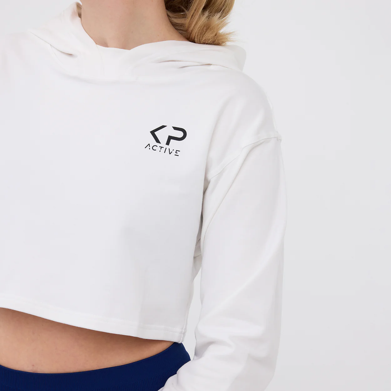 The subtle KP Active logo on the front adds a touch of brand style, making this cropped hoodie the ideal choice for both athletic activities and everyday casual looks. The modern fit and refined finish make this hoodie a versatile garment that effortlessly pairs with various outfits.